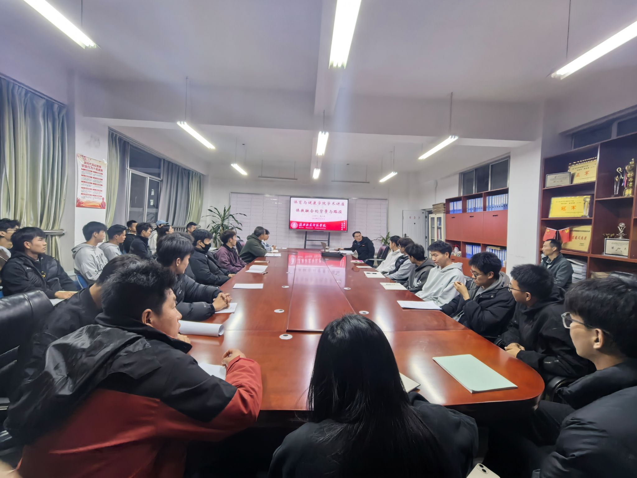 12月25日,体育与健康学院在笃学楼637室举办了以“体教融合的背景与路径”为主题的学术讲座,此次讲座由西南大学体育学院姚小毅副教授主讲,体育与健康学院李成均副院长主持,学院师生共50余人参与。