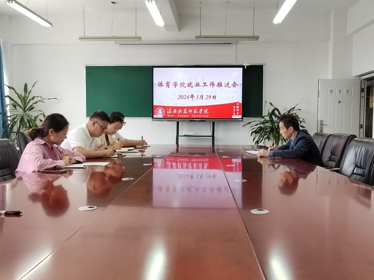 为进一步提升毕业生就业质量,做好我院2024届毕业生就业工作,5月29日,体育学院在笃学楼617室召开第六次就业工作推进会。体育学院党总支书记刘庚碧,党总支副书记甘文斌,学工办负责人戴建芳、毕业班班主任、就业工作人员参加会议。